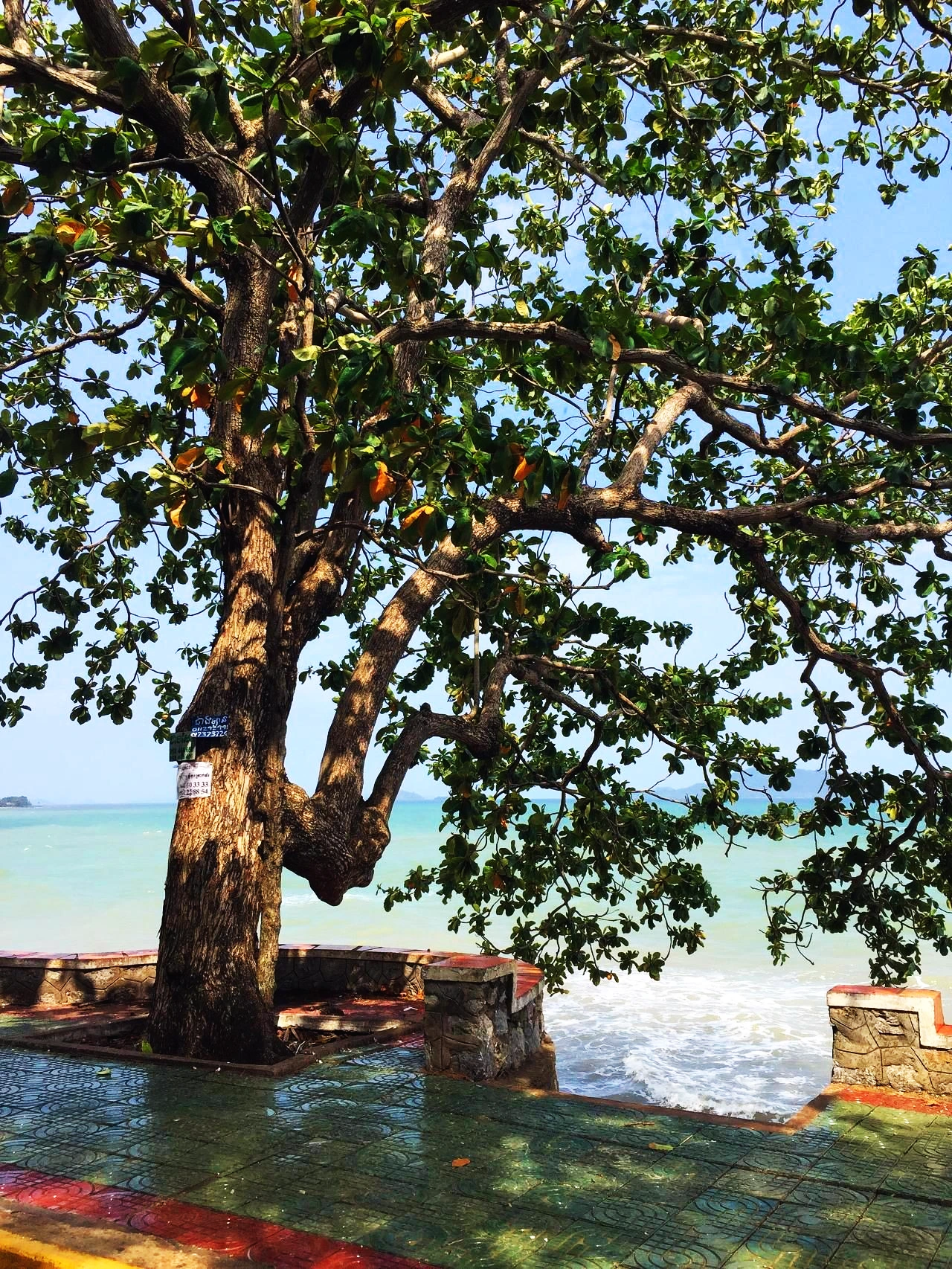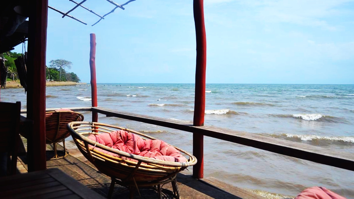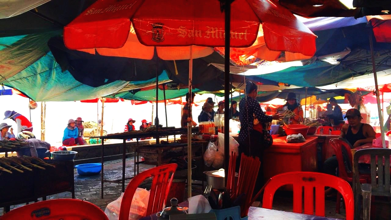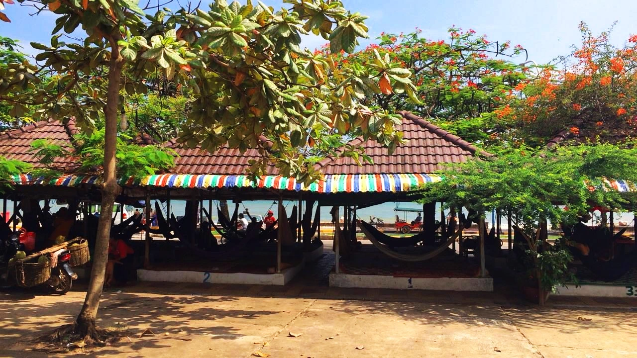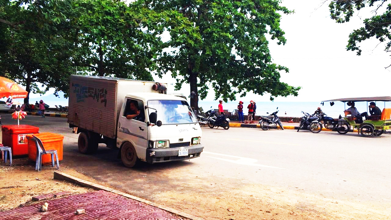 여행사 주인으로 보이는 여자는 그 나이 때 캄보디아 여성들보다 훨씬 풍채가 좋았다. 여자는 저렇게까지 큰 소리로 시끄럽게 말할 필요가 있을까 싶을 정도로 목소리가 크고 톤이 높았다. 미니밴에 처음 탄지 한 시간이 넘어서야 미니밴은 까엡으로 출발했는데, 캄폿 시내에서 까엡까지는 30분 정도밖에 걸리지 않았다. 수없이 진동하며 비포장도로를 달린 미니밴은 까엡 해수욕장 주차장에 여행자들을 내려주고 2시에 다시 데리러 오겠다고 했다.