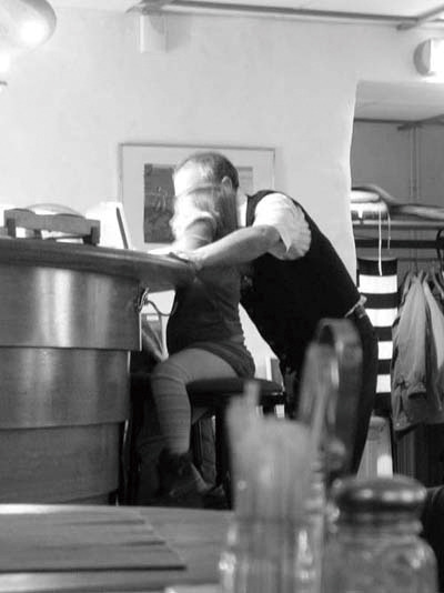 손님 없는 레스토랑에서 밥을 먹는 사람은