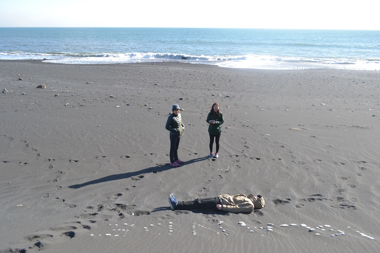 우리가 처음으로 간 곳은 이 검은 모래의 해변이었다.
