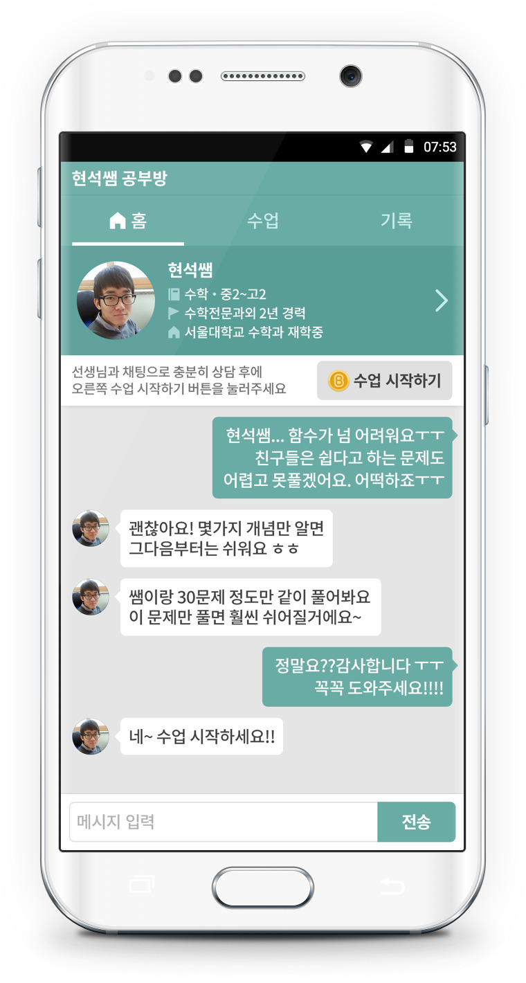 학생 - 공부하다가 모르는 문제가 나오면 사진을 찍어 공부방 채팅창에 올린다.