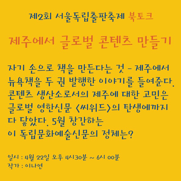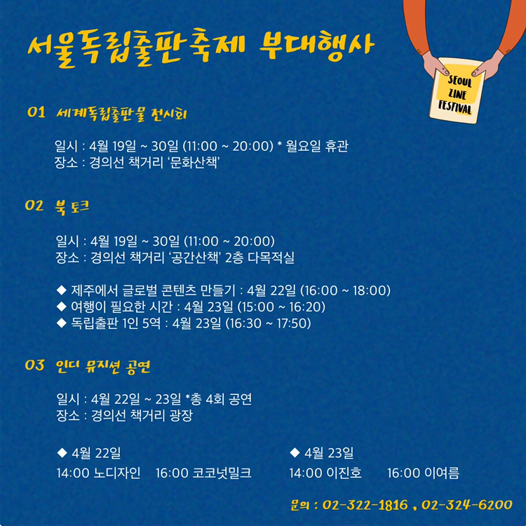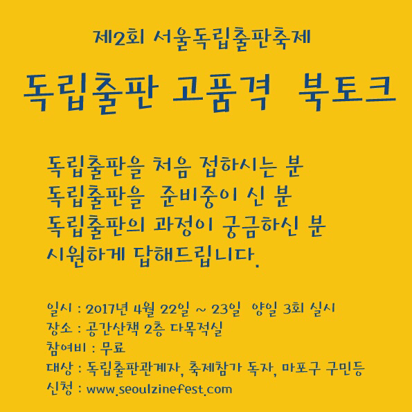 55개 팀이 다양한 독립출판물들을 소개하는 주말 이틀 동안의 행사도 행사지만, 사장님이 애정으로 준비하신 다른 부대행사들도 잘 됐으면 좋겠다.