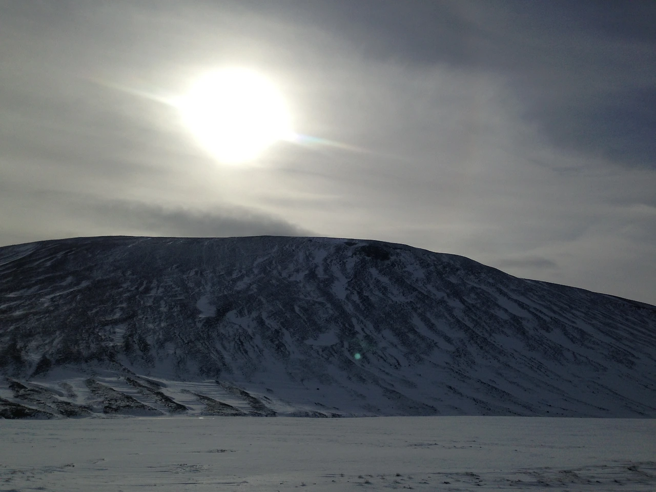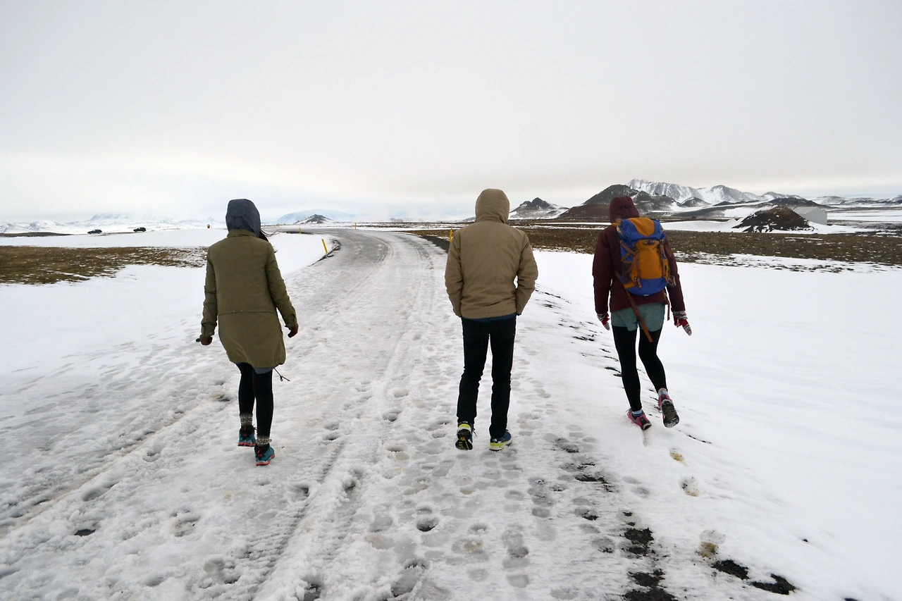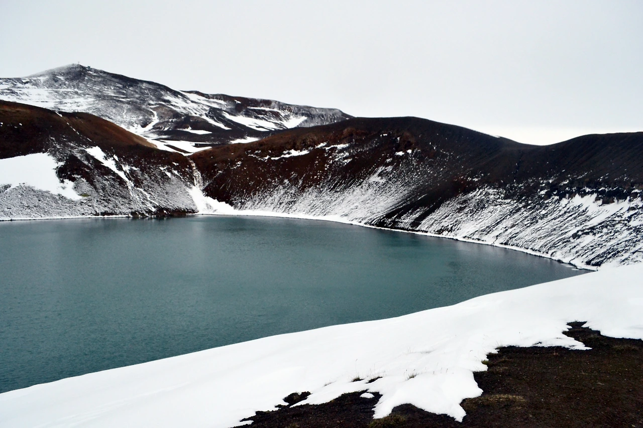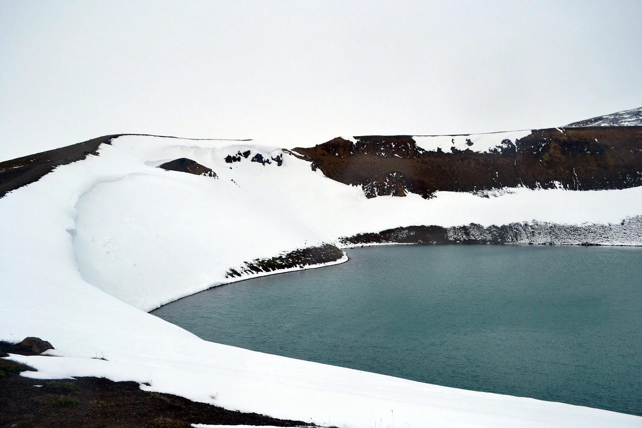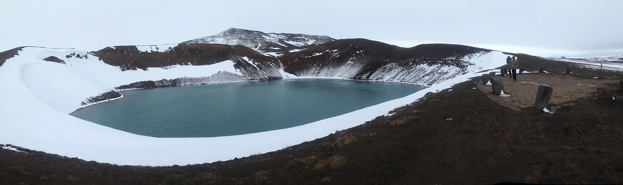 이렇게 눈밭을 달려 도착한 곳은 크라플라 화산지대에 있는 여러 볼거리 중 하나인 비티(Viti) 호수.