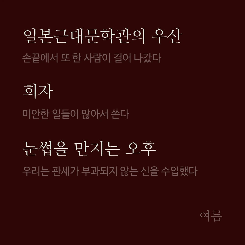 본 시리즈는 현재 세 번째 단행본인 김정애 시집 『오래 미워한 사람에게』까지 출간했습니다.
