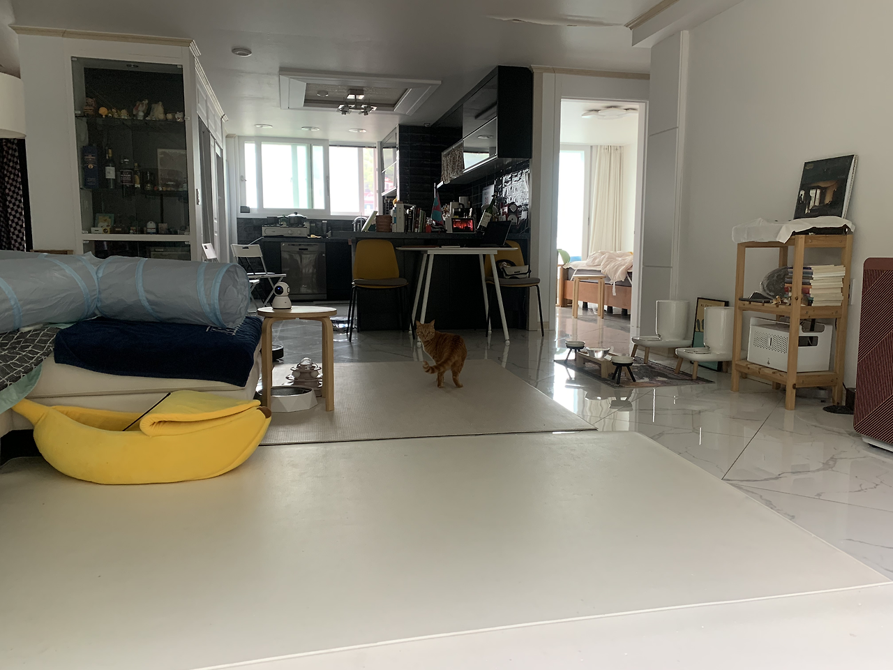 청소는, 아는 분은 알겠지만 고양이들과 사는 집은 방금 전의 청소도 다소 의미가 없어서 또 청소를 해야 하나, 하면 뭘 하나 싶지만 하지 않으면 또 금세 털과 모래로 가득해지고 이것은 나와 고양이들의 건강에 좋지 않으므로 하지 않을 수가 없는 것으로서 일단 로봇청소기에게 초벌 청소를 시키고 그러는 동안 나는 드디어 책을 읽어야지, 하고 해먹에 누웠다. 해먹이 채 열리지 않은 상태로 앉는 바람에 바닥에 엉덩방아를 찧었는데 그니와 으니가 놀라서 뛰어나왔다. 고양이들과 사는 보람. 미리는 이 정도로 뛰어오지 않는다.