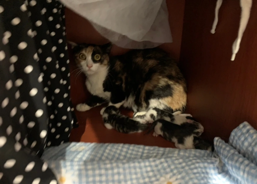 그리고 7월 29일에 꼬물이 넷을 출산했다. 누구의 도움도 없이. 완전히 혼자서.