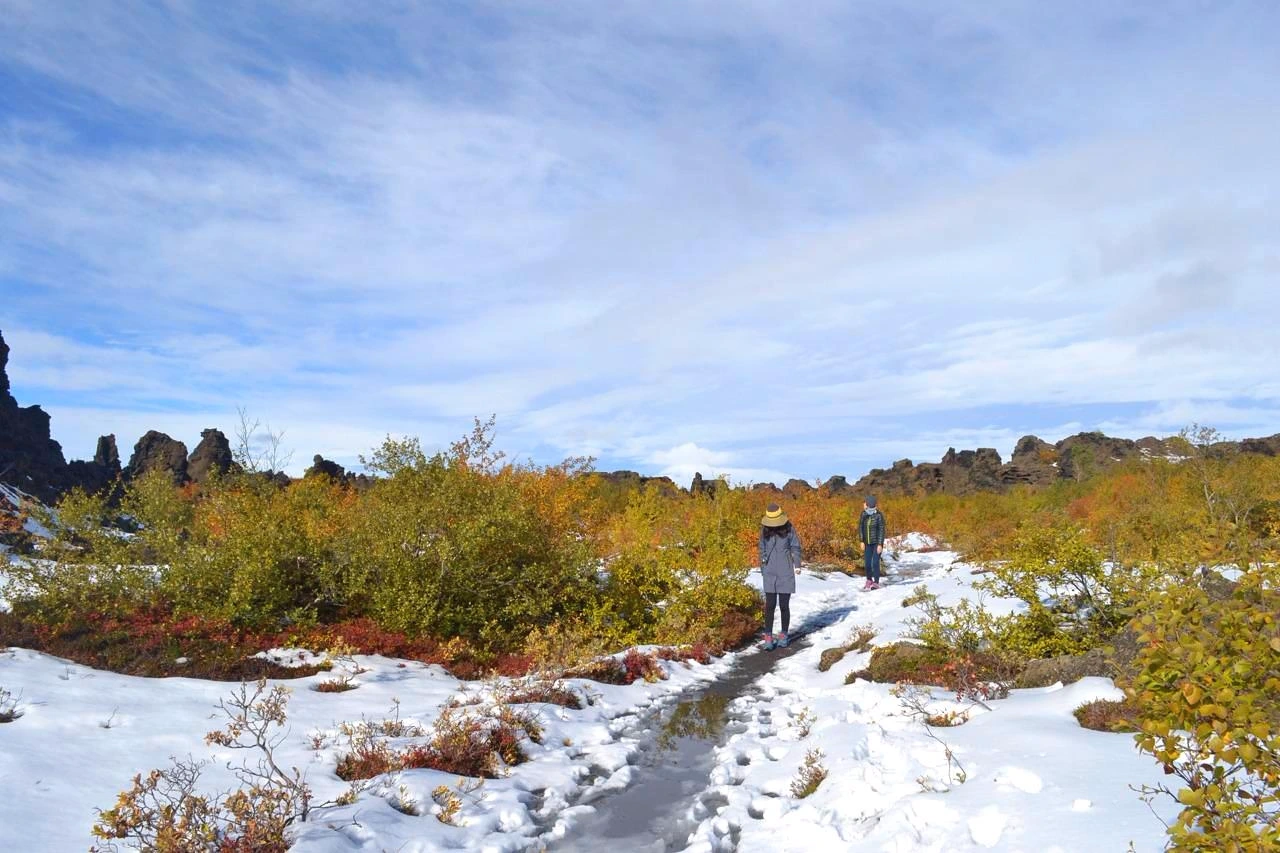 뮈바튼 호수와 스타크홀스티요른 호수 산책을 마친 후엔 디무보르기르(Dimmu Borgir)로 갔다.