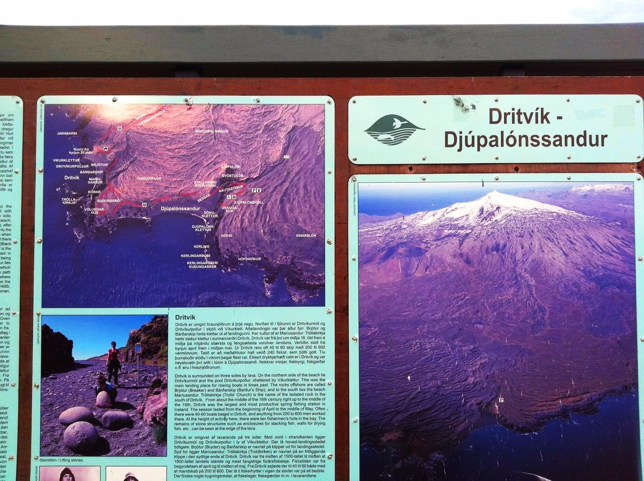 아이슬란드 여행의 아홉 번째 날이자, 사실상 여행의 마지막 날에 처음으로 간 곳은 아이슬란드 남서쪽에 위치한 드리트빅(Dritvík)과 그 안으로 들어가면 만날 수 있는 검은 모래의 해변 듀팔론산두르(Djúpalónssandur)였다.