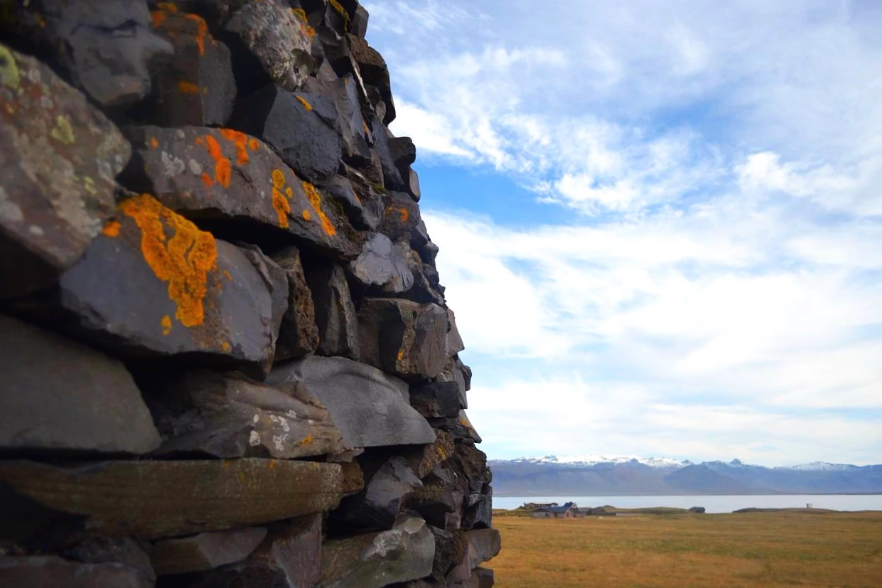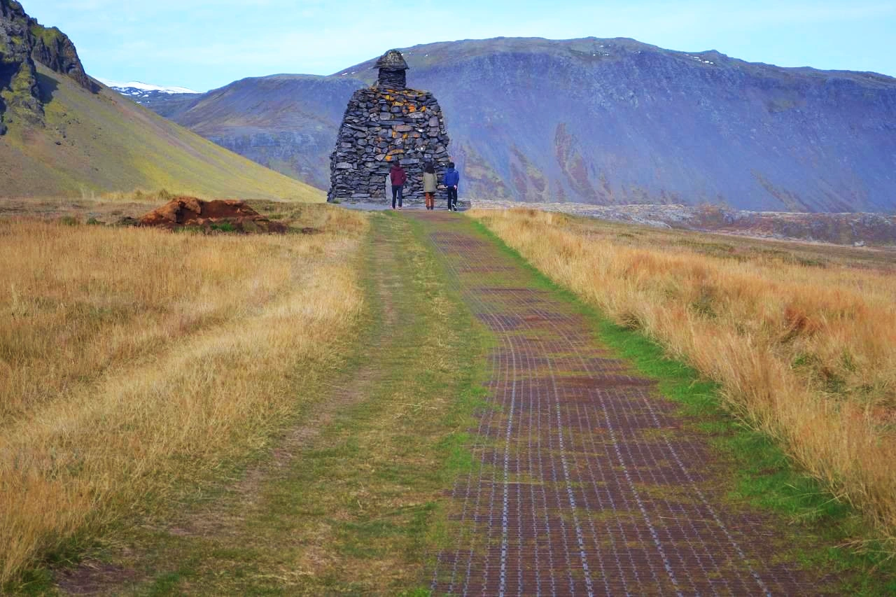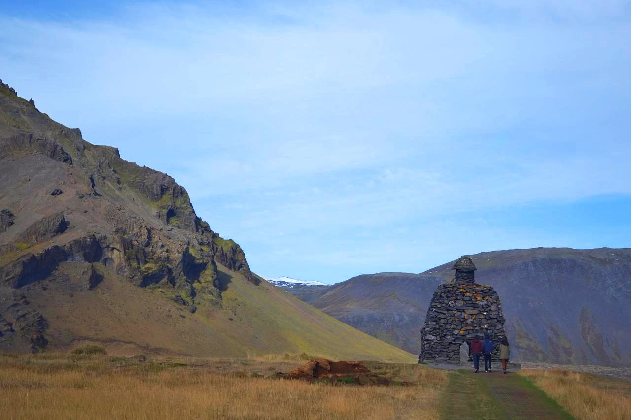 아이슬란드 아니랄까 봐 이 돌무덤 저편으로도 만년설로 뒤덮인 산이 보이고,