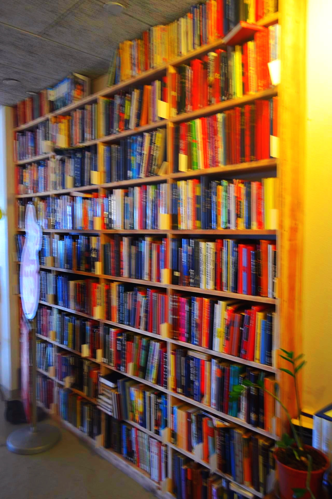한쪽 벽에는 책이 잔뜩 꽂혀 있고,