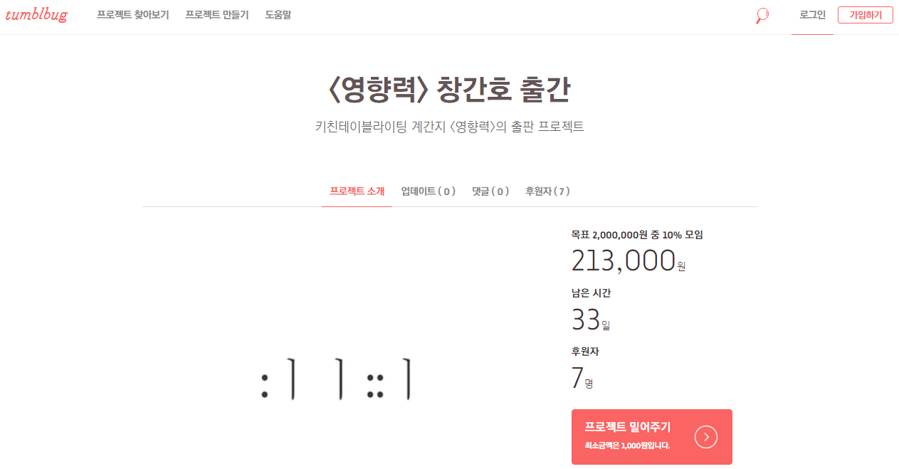 텀블벅 <영향력> 창간호 출간 프로젝트 페이지 바로 가기