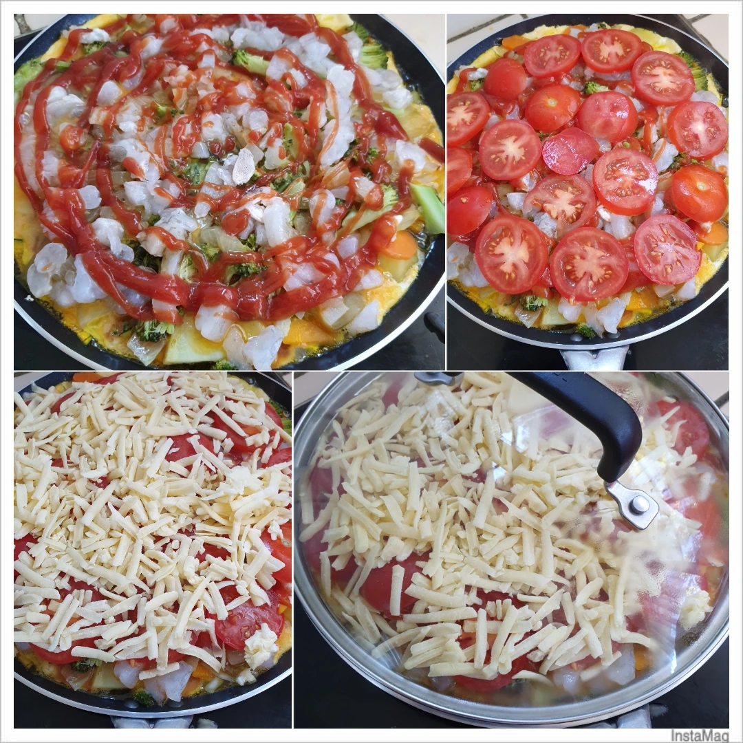 살짝~ 피자가 당기기에... 냉장고에 있는 재료만으로 프라이팬을 사용해서 감자 피자를 만들어 보았어요 ^*^