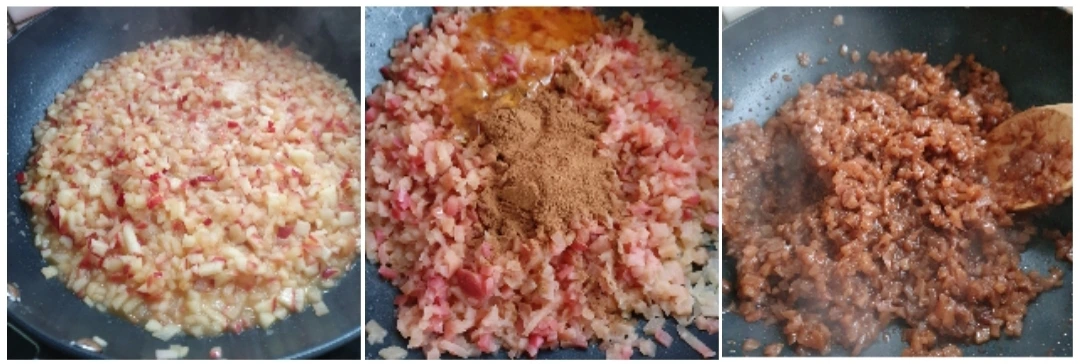 물기가 없어질 때까지 졸이다가 맛을 보니 덜 달아서 꿀을 더 넣어주고 시나몬가루를 넣었어요.