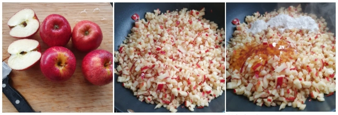 사과를 잘게 썰고 버터와 설탕 그리고 꿀을 넣어요 ^*^