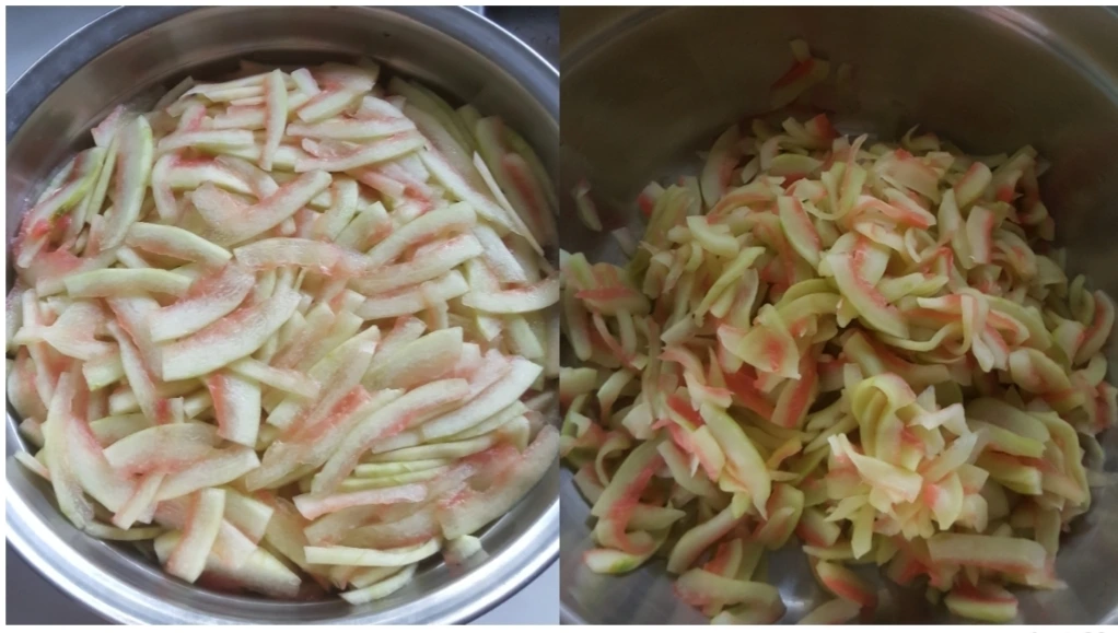 저는 수박껍질을 먹어보니 달콤한 맛이 돌아서 설탕은 안 넣었어요...