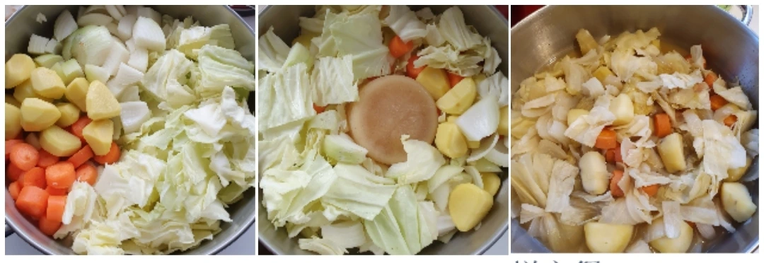 모든 야채를 넣고 물 또는 육수를 붓고 야채가 푹 익혀주어요~