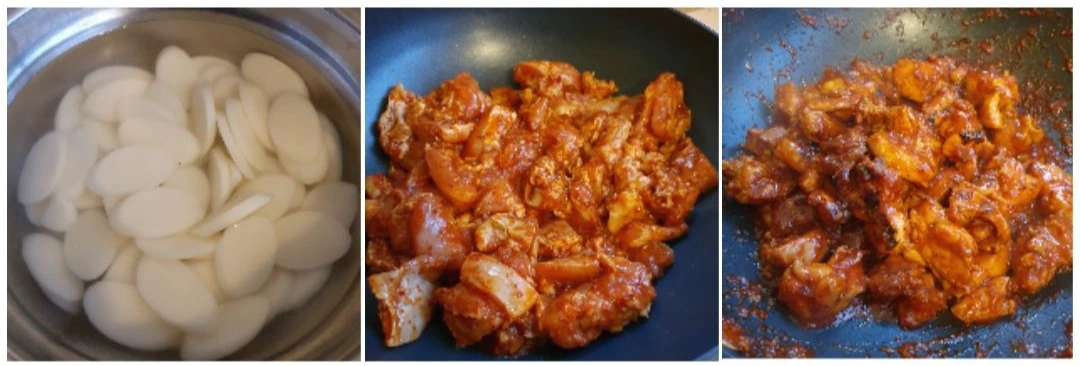 Tip~ 이때는 다시 한번 익혀줄 것이기 때문에 닭고기가 푹 익지 않아도 돼요~