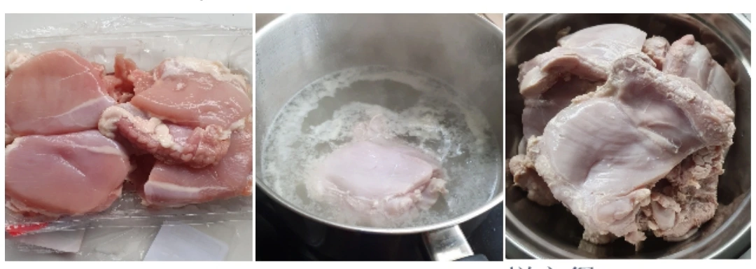 1. 닭은 따로 씻지 말고 팔팔 끓는 물에 살짝 데쳐주어요~