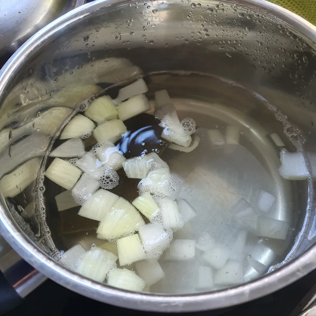 Tip~ 그냥 통째로 넣고 익은 후에 건져서 썰어주어도 돼요~ 이렇게 썰어서 넣으면 잘못하면 알이 모두 흩어질 수도 있어요^*^