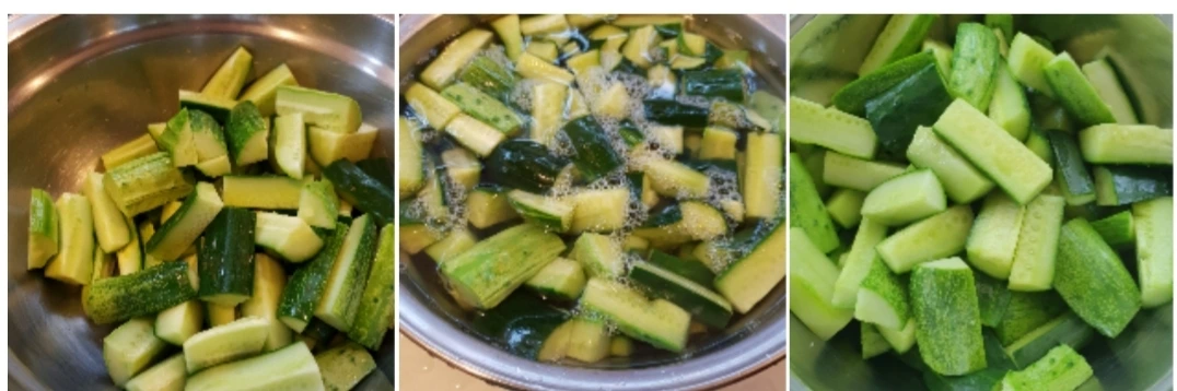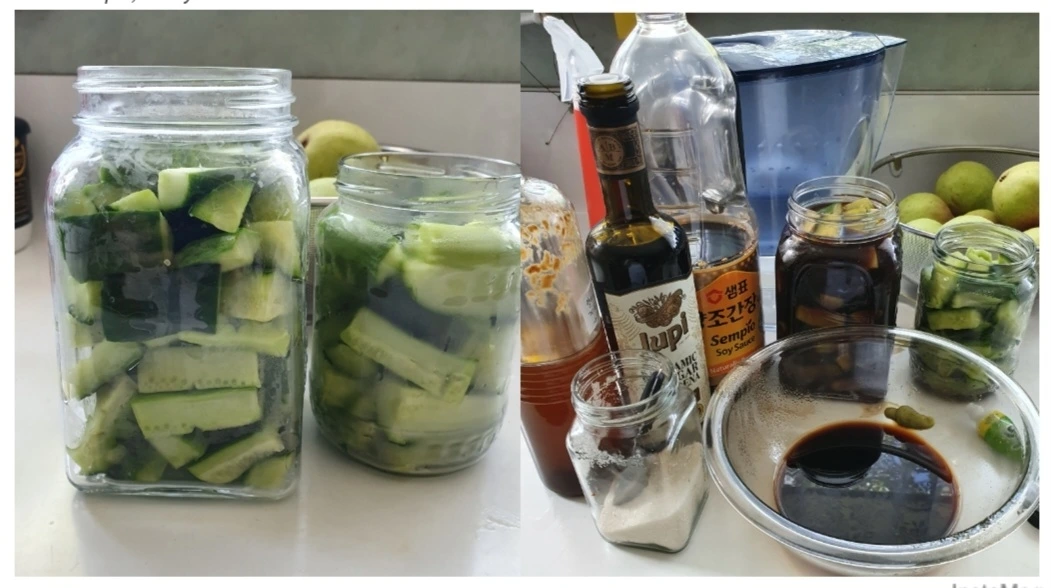 재료오이(되는대로~)간장 2식초 2물 2설탕 1.5매실액 0.5연와사비 1 (취향껏 가감하세요^*^)