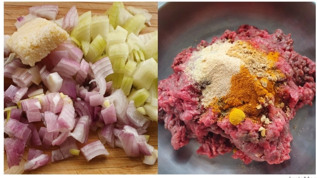 2. 양파와 마늘을 넣고 양념가루를 넣은 후에~