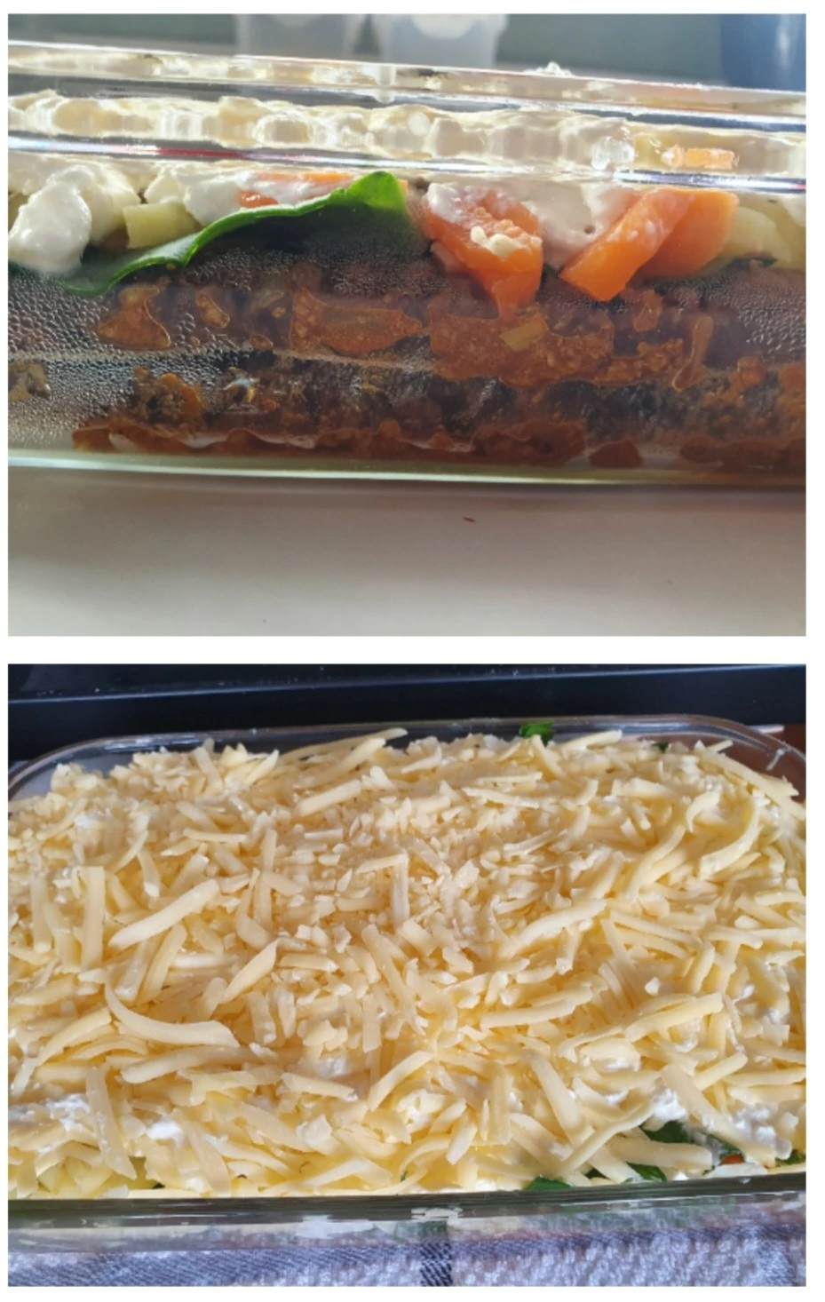 저는 고기는 맨 처음만 좀 두툼하게 넣고 sheet 한번 더 덮고 고구마나 감자 그리고 시금치를 올리고 치즈를 올려주고 또다시 치즈로 덮어 구워주기도 하지요~