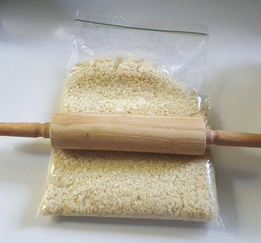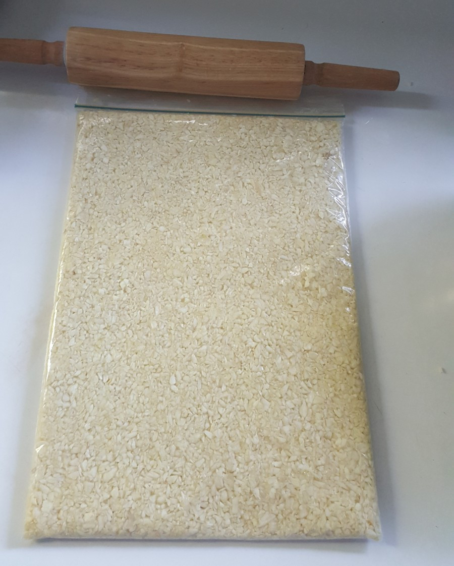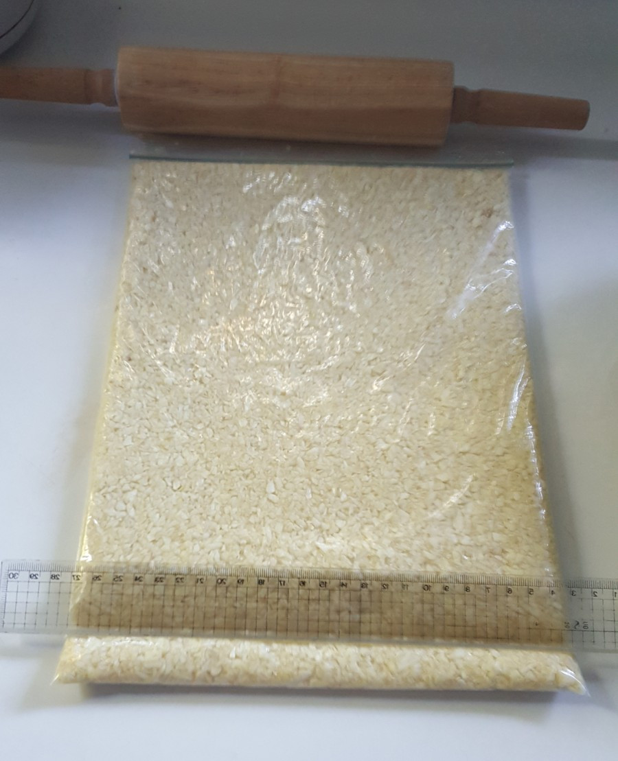 3. 지퍼백에 넣어 공기를 빼주면서 밀대로 쫀쫀하게 밀어주고....