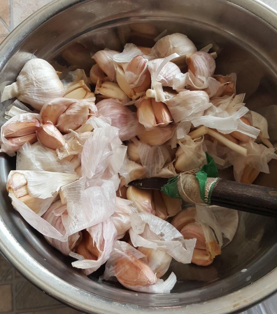 1. 마늘을 까주고... 싹이 났거나 혹시 썩은 것이 있으면 도려내고...