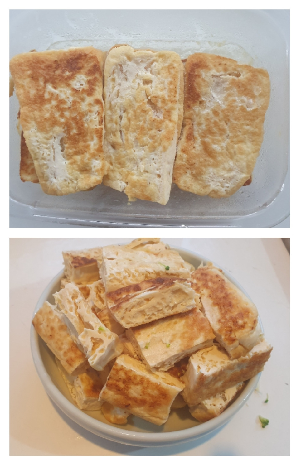 이번에는 중국가게 가는 길에 두부를 사 왔는데 작은 크기로 8모나 돼서 반은 올리브유에 부쳐서 냉동실에 얼려두었지요...