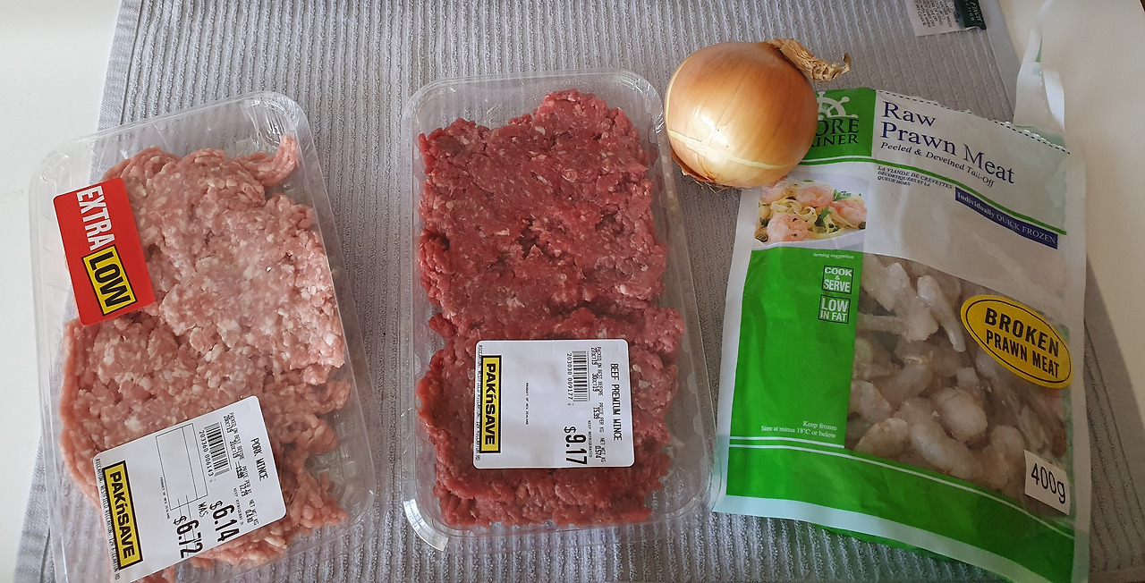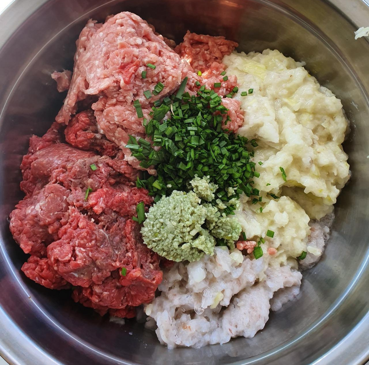 소고기 다짐육 : 돼지고기 다짐육 : 생새우 = 1:1:1