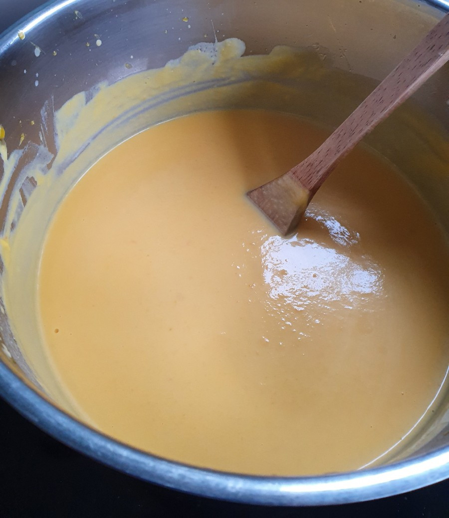 6. 곱게 간 호박과 고구마, 당근을 큰 냄비에 붓고~ 크림 500ml를 넣고 섞어 준 후에~ 우유를 부어서 취향에 맞게 농도를 맞추고... 소금을 넣고 간을 본 후에~ 꿀을 넣어요...