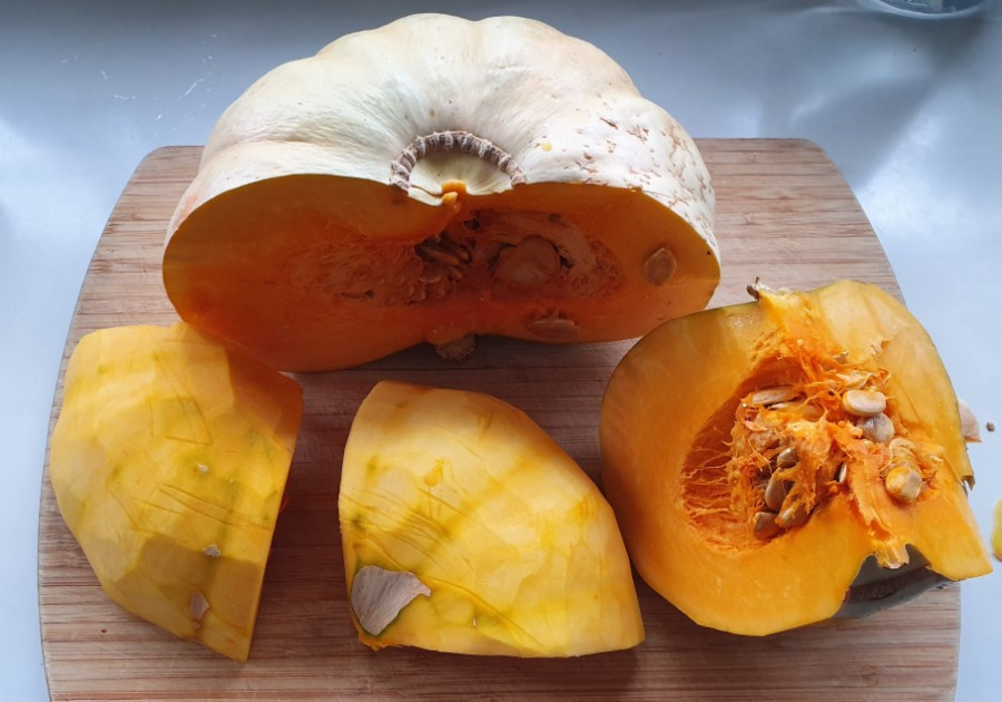1. 호박은 씨를 빼고 껍질을 벗겨요~