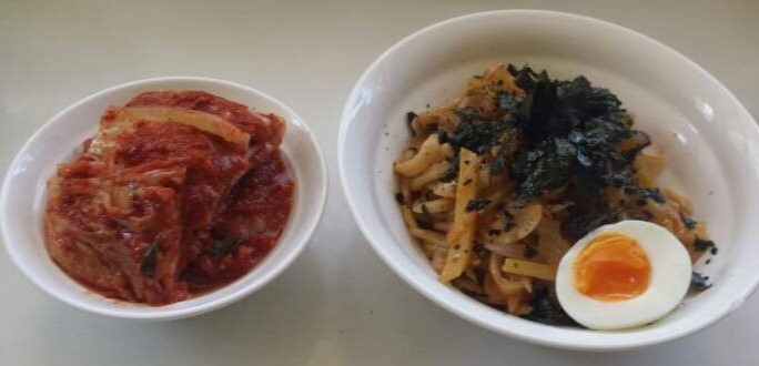 그냥 냉장고에 잠자고 있는 감자와 양파 그리고 김치를 볶아주고 아무 국수나 넣고 같이 볶아주기만 하면 되지요~ 설탕으로 단맛을... 간장으로 간을...