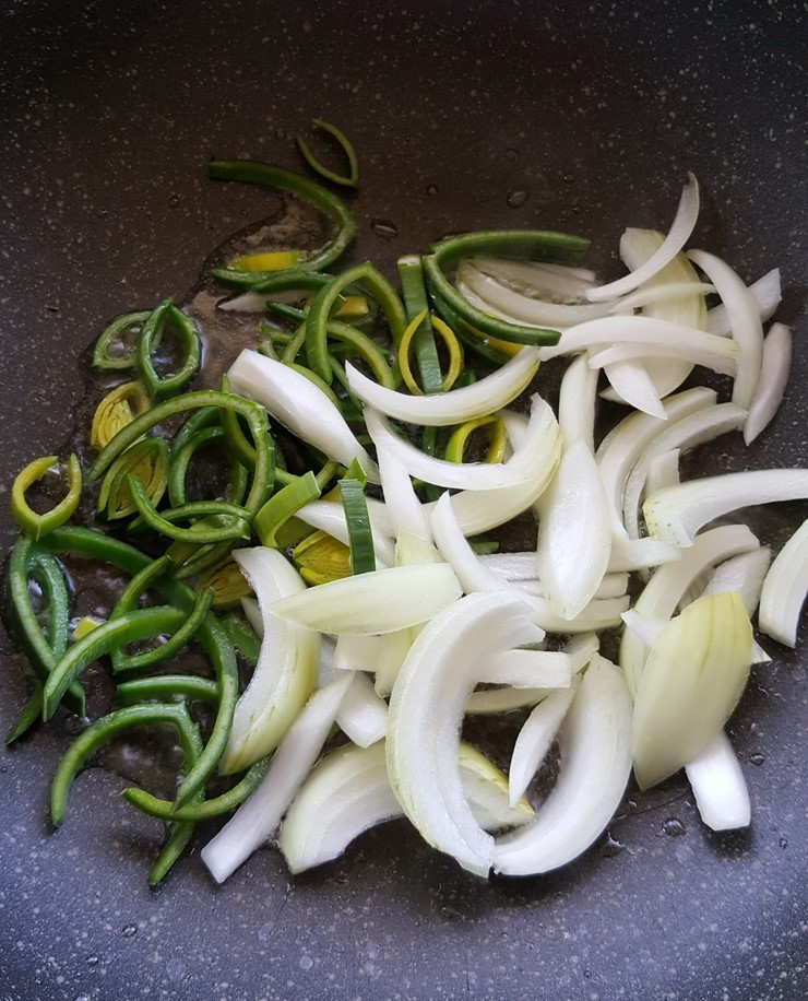 2. 프라이팬에 기름을 두르고 파향이 날 때까지 볶아주어요~