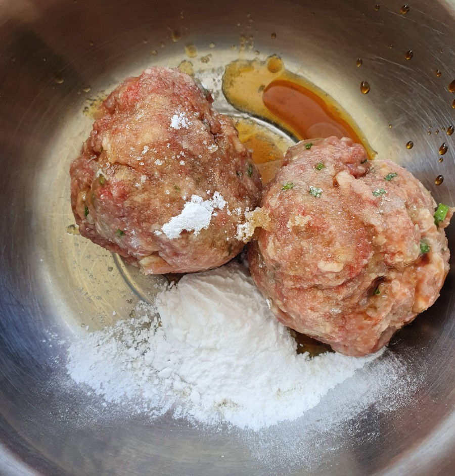 ** 전분을 넣으면 고기가 흩어지지도 않고 나중에 다른 재료들과 잘 엉겨서 맛이 훨씬 좋습니다.