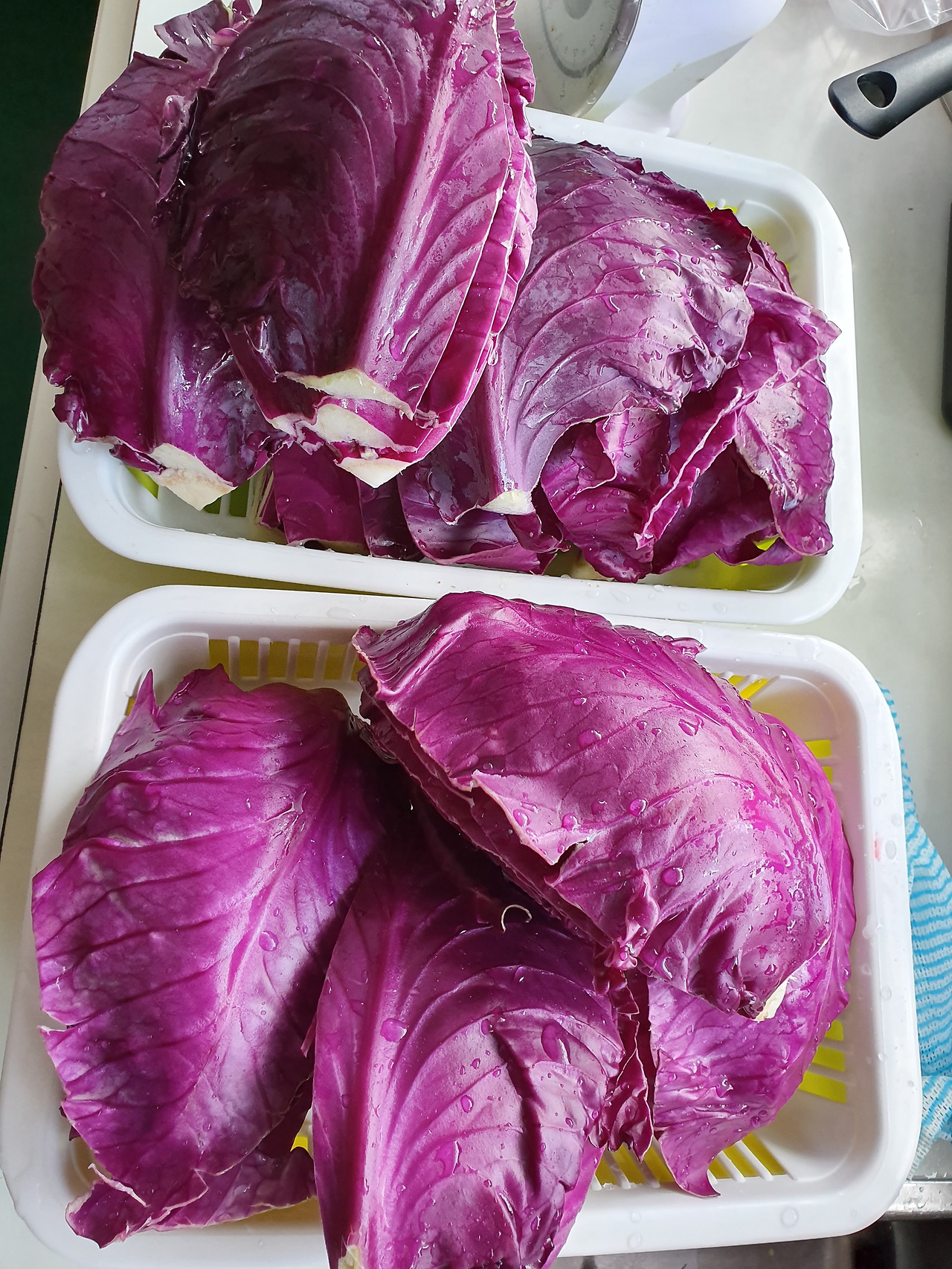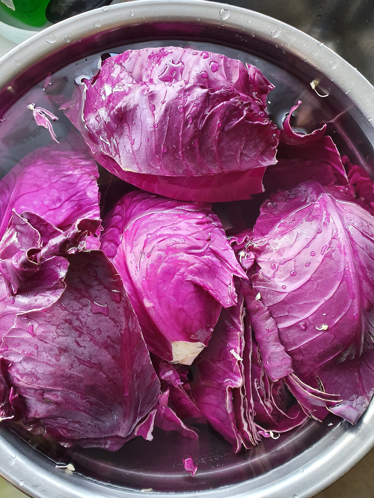 1. 양배추를 사등분해서 흐르는 물에 깨끗이 씻고~
