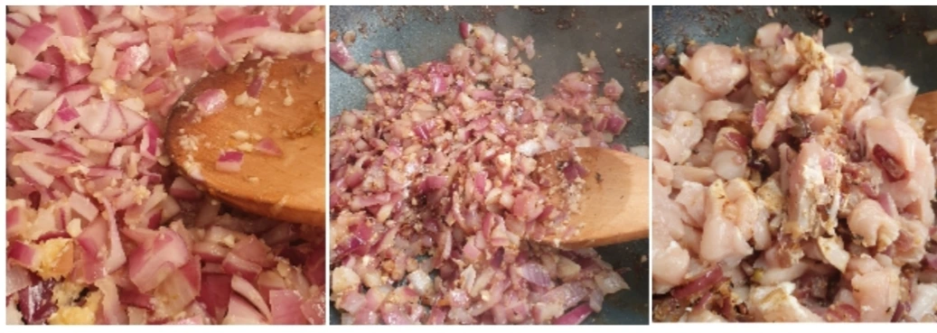 양파가 어느 정도 볶아지면 마늘을 넣고 노릇노릇할 때까지 볶다가 준비된 고기를 넣고 볶는다.