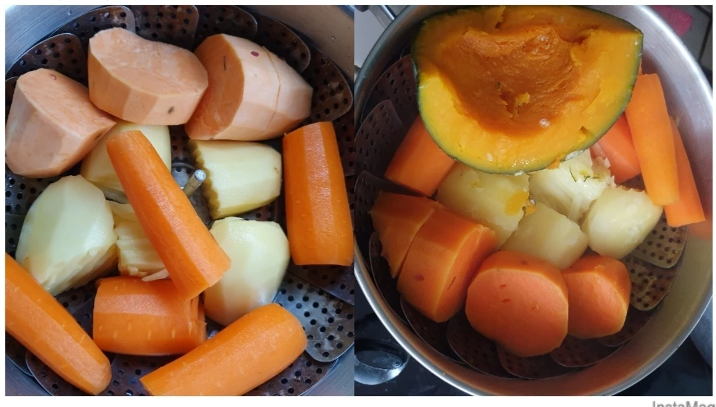 2. 감자와 당근 그리고 고구마, 호박은 푹 익혀주어요...