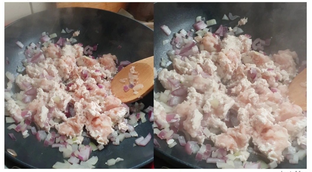 3. 양파를 넣고 볶다가 고기를 넣고 어느 정도 익을 때까지 볶아주어요~