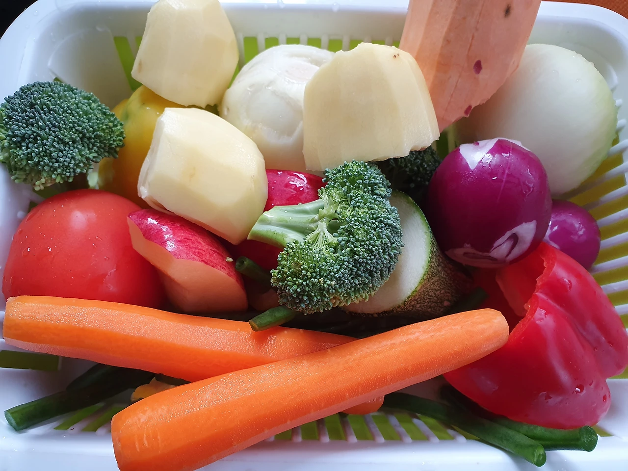피망, 양파 등 각종 야채 (골고루 다 넣어주세요)