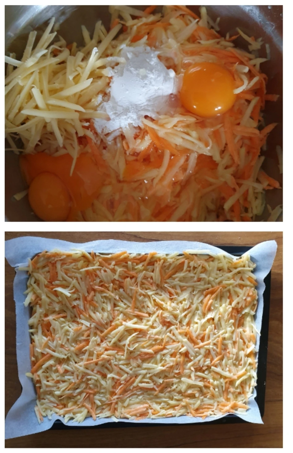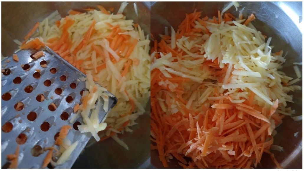 1. 감자와 당근, 고구마를 강판에 갈아주고 물기를 꼭 짜주세요.