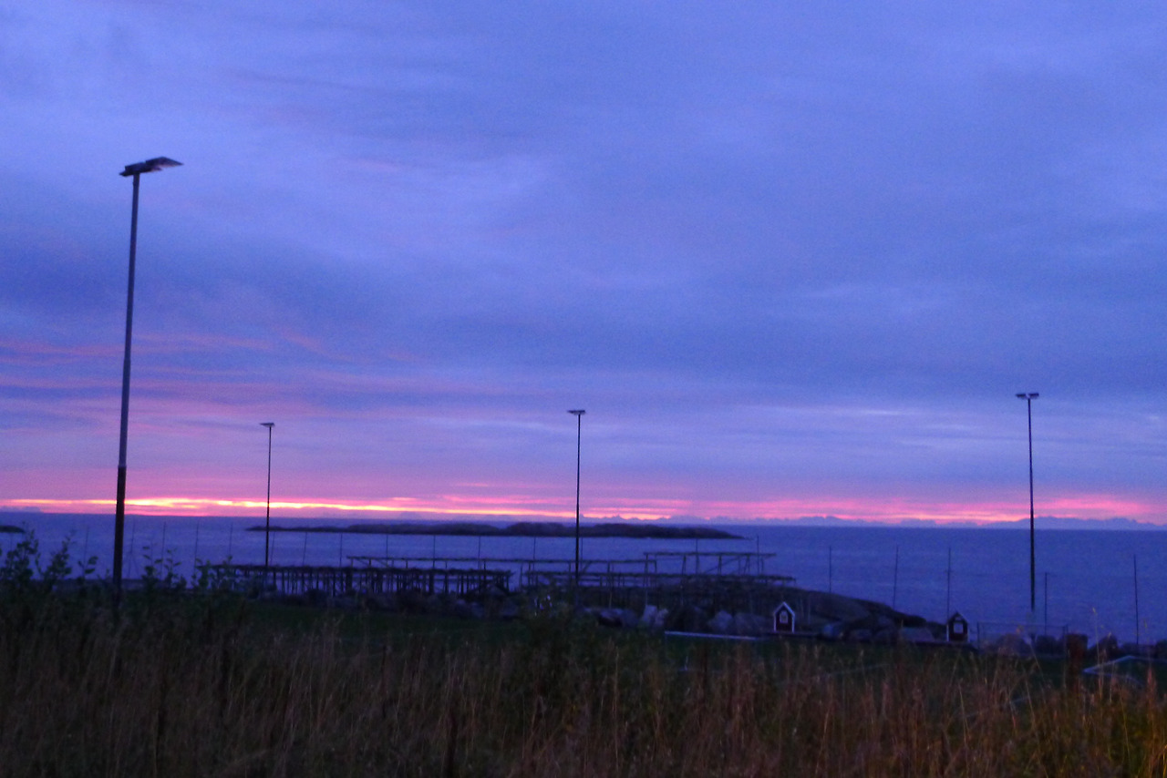 동쪽 하늘에 붉은빛이 감돌았다. Reine까지는 걸어가야 편의점이라도 있을 거 같아서 그곳까지만 걷기로 했다. 다행히 주유소 간판이 보였다. 좋은 징조였다.