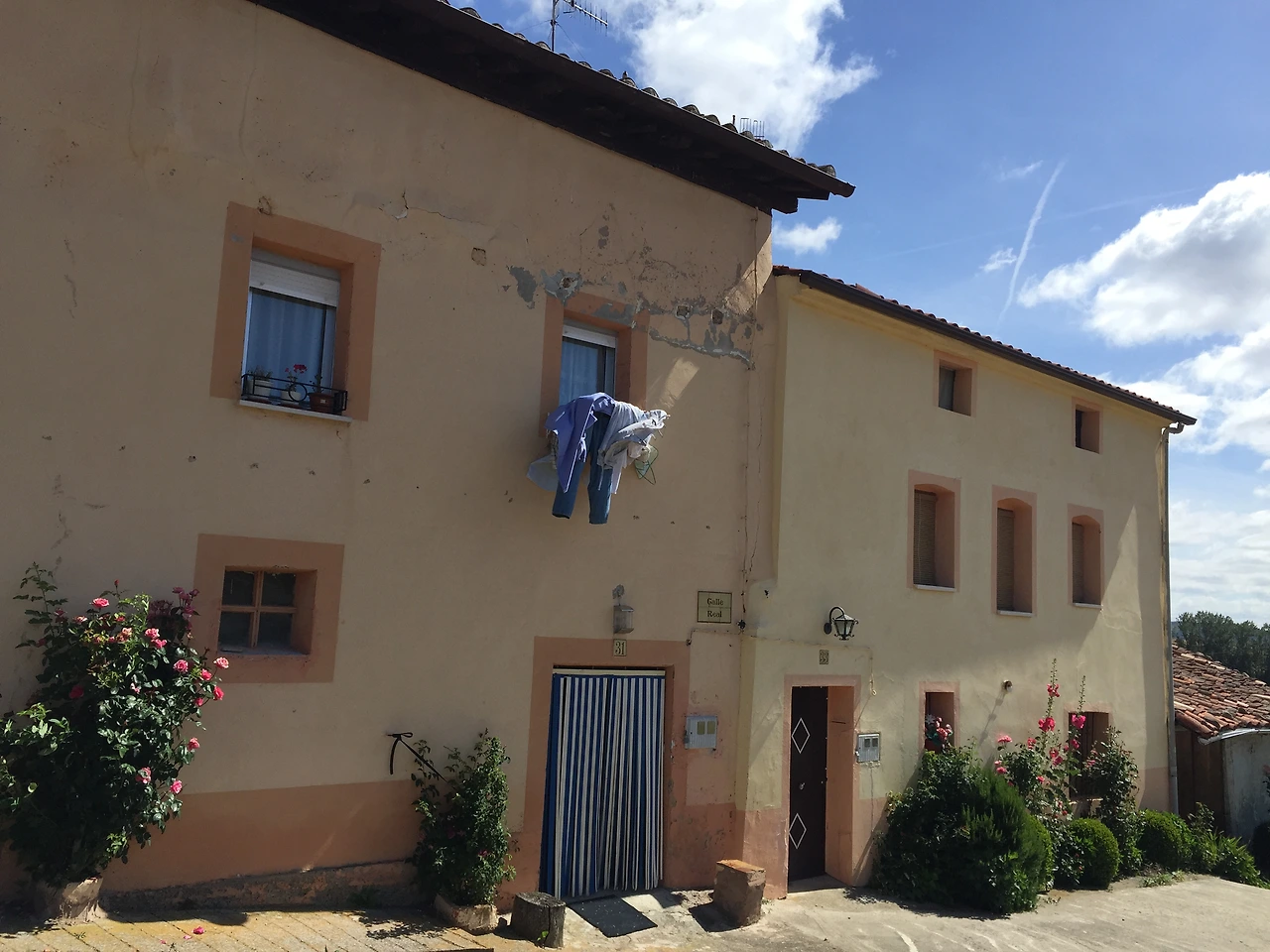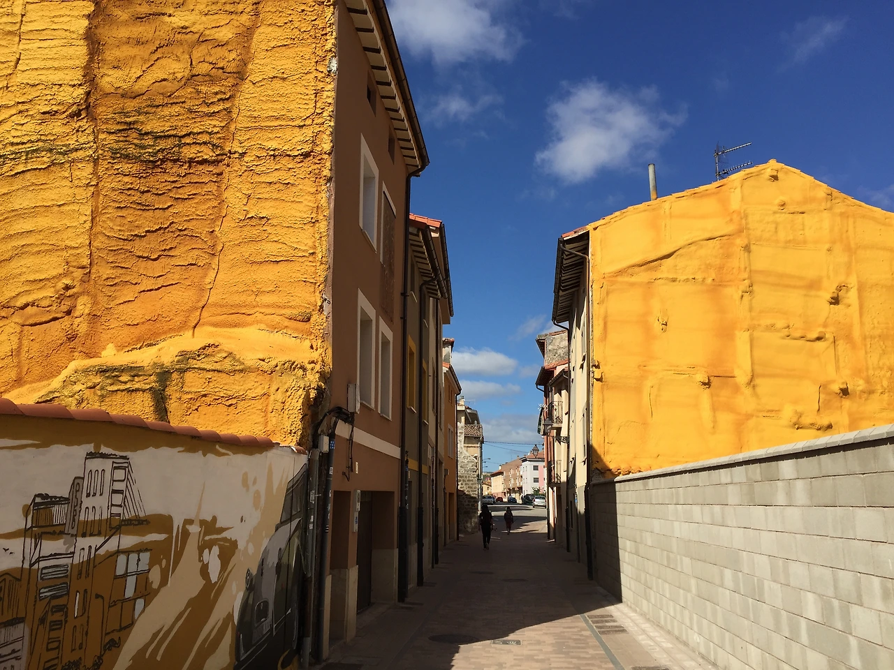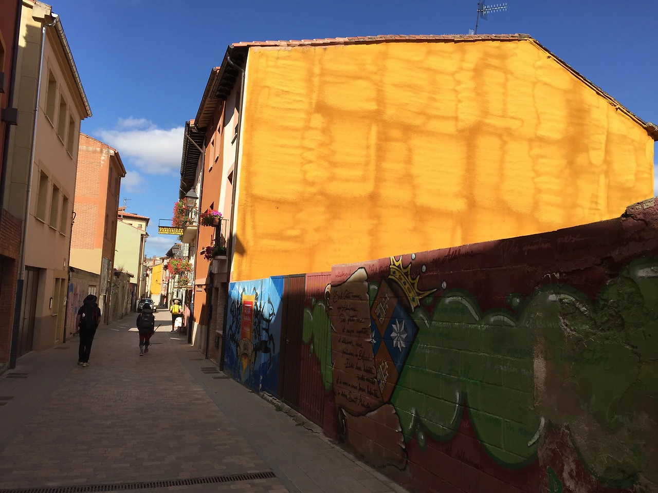 형형색색의 벽화가 그려진 마을에 접어들었다가 벗어나 토산 토스(TOSANTOS) 마을로 가는 길에 하늘이 한국의 가을 하늘처럼 푸르고 높다. 볕이 좋아 마을 곳곳에 걸린 빨래도 파아삭 잘 마르고 있었다. 토산 토스(Tosantos)에 서 앞으로 두 개의 마을만 더 통과하면 빌라 프랑카 몬테스 데 오카(Villafranca Montes de Oca)에 도착할 터였다.