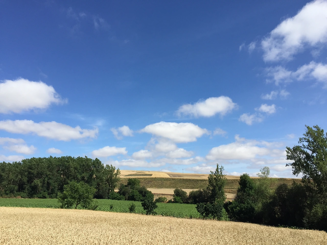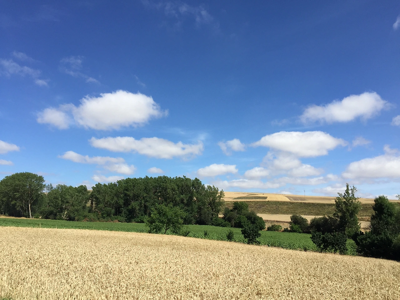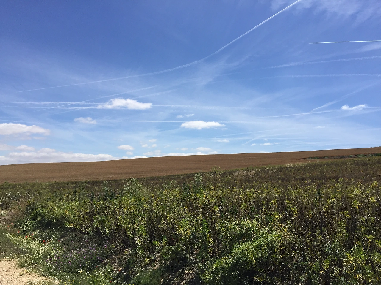 형형색색의 벽화가 그려진 마을에 접어들었다가 벗어나 토산 토스(TOSANTOS) 마을로 가는 길에 하늘이 한국의 가을 하늘처럼 푸르고 높다. 볕이 좋아 마을 곳곳에 걸린 빨래도 파아삭 잘 마르고 있었다. 토산 토스(Tosantos)에 서 앞으로 두 개의 마을만 더 통과하면 빌라 프랑카 몬테스 데 오카(Villafranca Montes de Oca)에 도착할 터였다.