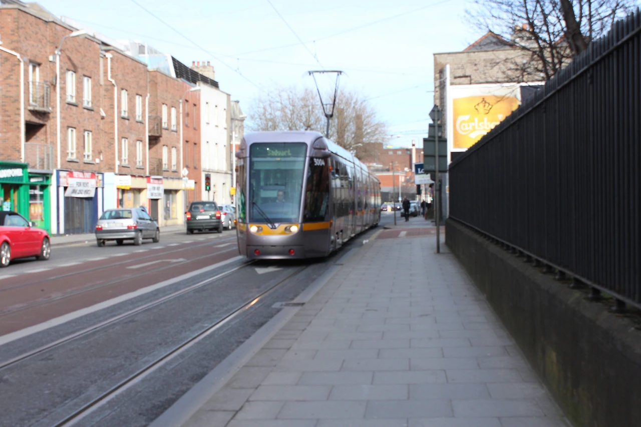 루아스라고 불리는 더블린 시티 트렘이 들어오고 있다.