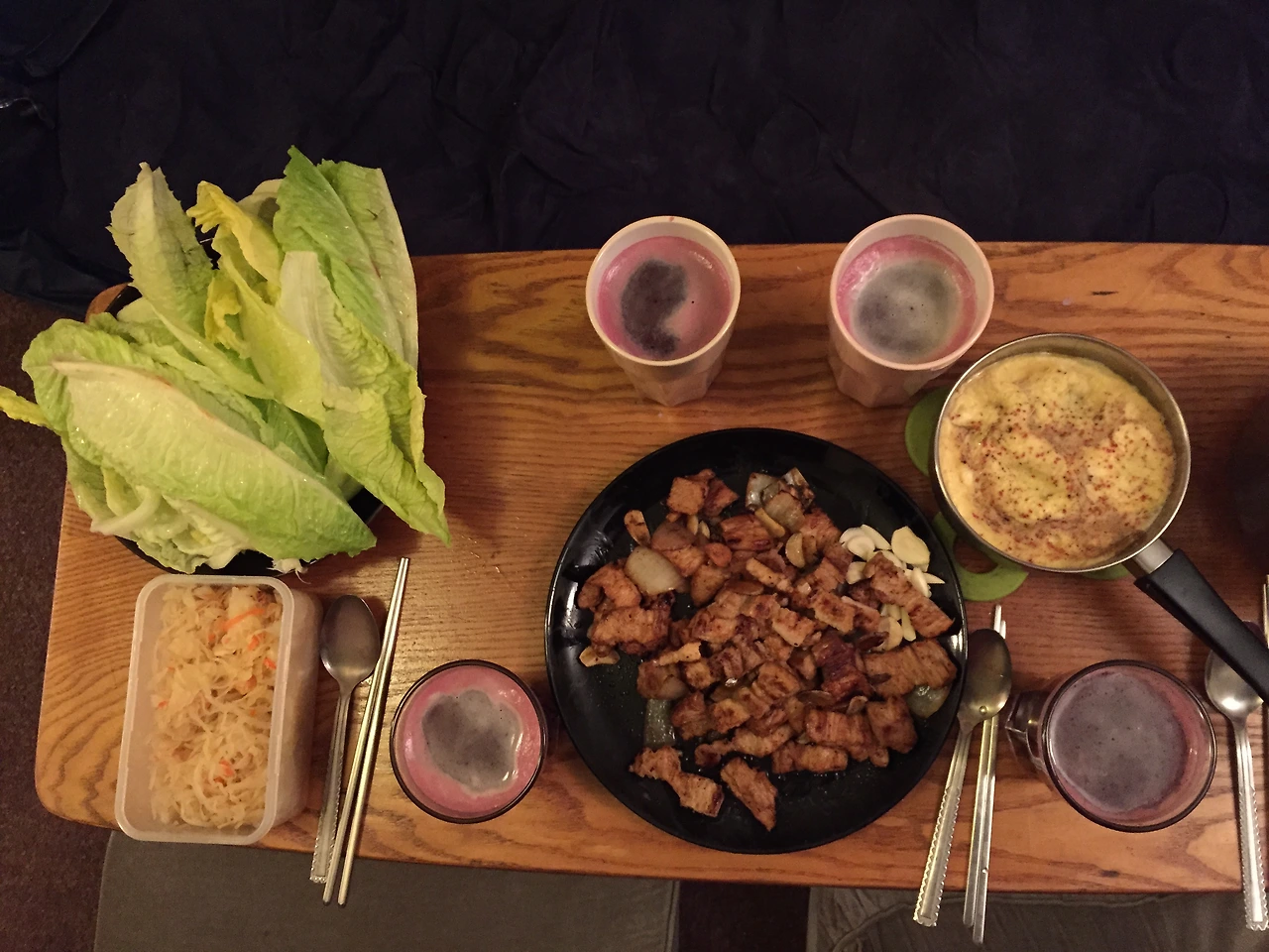 더블린 시티로 돌아오는 어느덧 해가 졌다. 저녁에는 삼겹살과 뱀파이어주ㅡ 와인과 호가든을 섞어 만든 술인데 색이 피를 연상시켜 붙은 이름ㅡ를 마셨는데 삼겹살도 한국의 삼겹살 못지않고 뱀파이어주 맛도 아주 일품이었다. 몇 년이 지난다 해도 잊을 수 없는 따뜻한 맛과 그 날의 풍경이다.