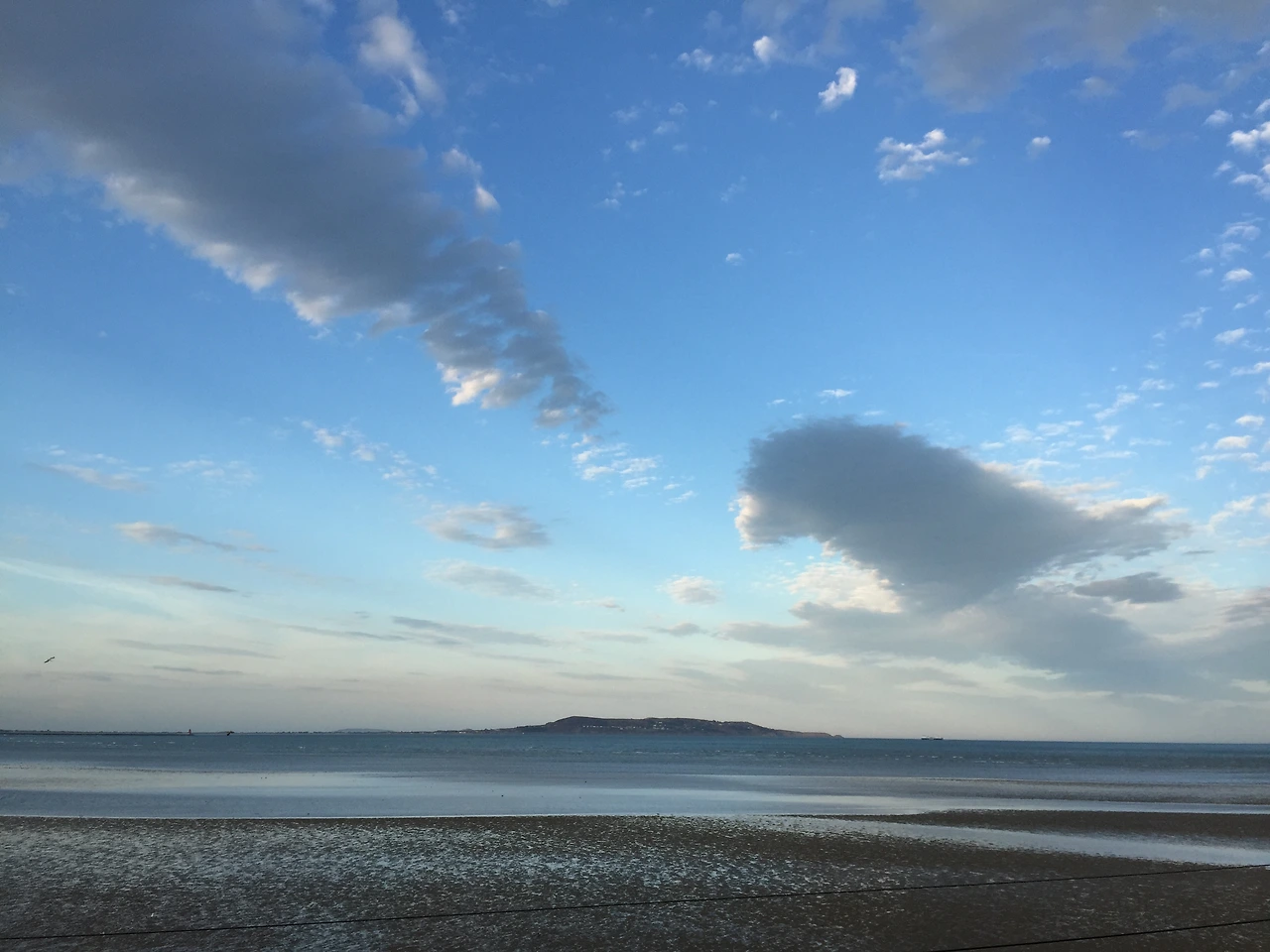 오랜만에 보는 바다. 한국의 동해 바다만 생각하다 왔더니 물때를 잘못 만났는지. 파도가 철썩거리는 바다가 아닌 평온하기 그지없는 갯벌 같은 바다이다. 하지만 하늘과 바다의 경계가 모호한 오늘 더블린 날씨는 정말 최고다.