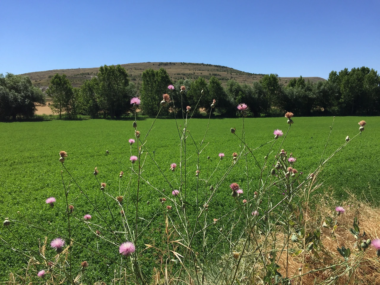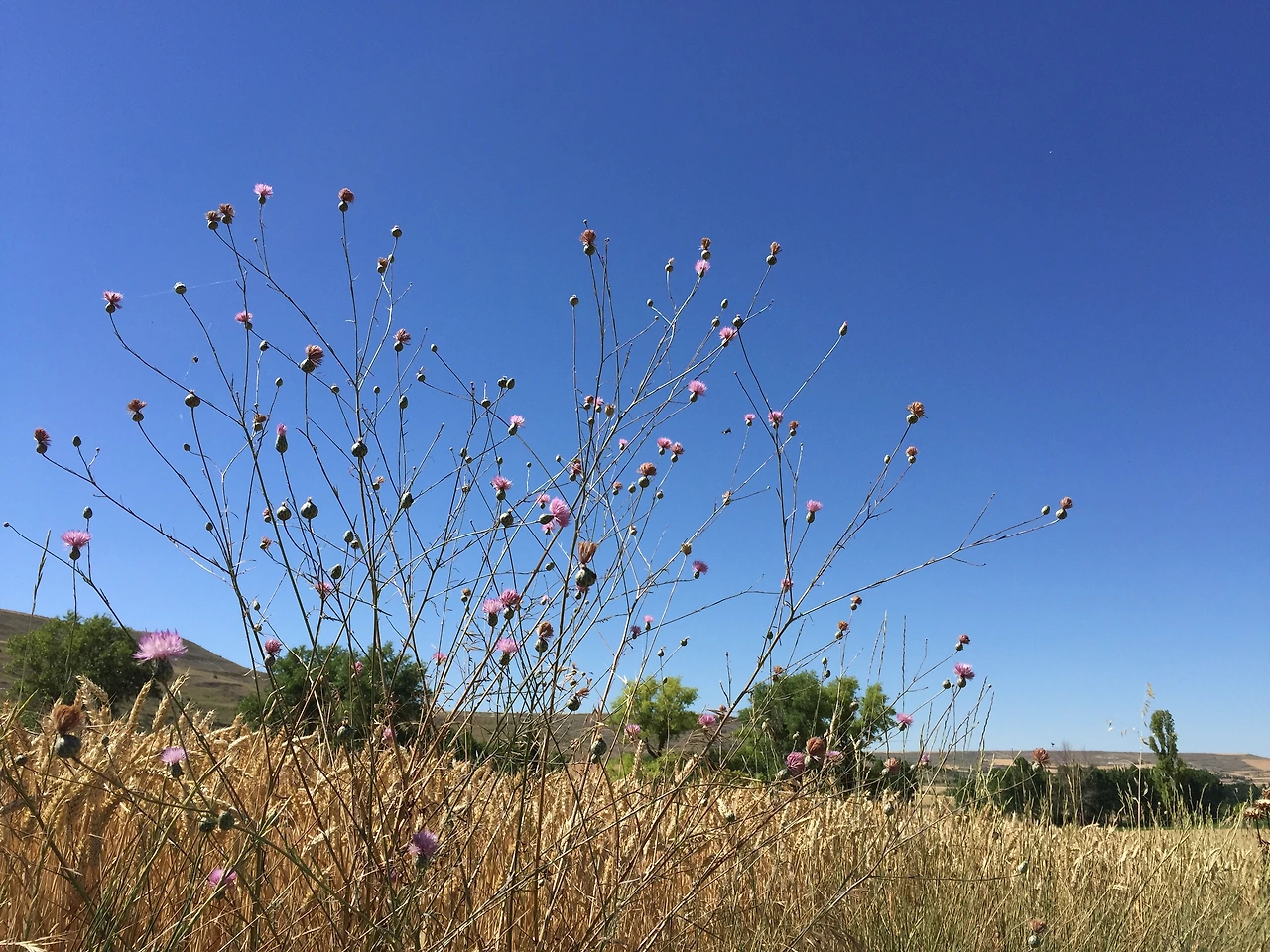 작은 마을 하나에 다다랐을 때, 부엔 카미노(Buen Camino)가 멋스러운 벽화를 만난다. 계속해서 들판에 핀 꽃들과 민들레 갓털도 카메라에 담아보고, 잎이 무성한 가로수 길을 따라 주욱 걷다 보니 오늘의 목적지인 카트스로헤리스(Castrojeriz)에 도착했다.