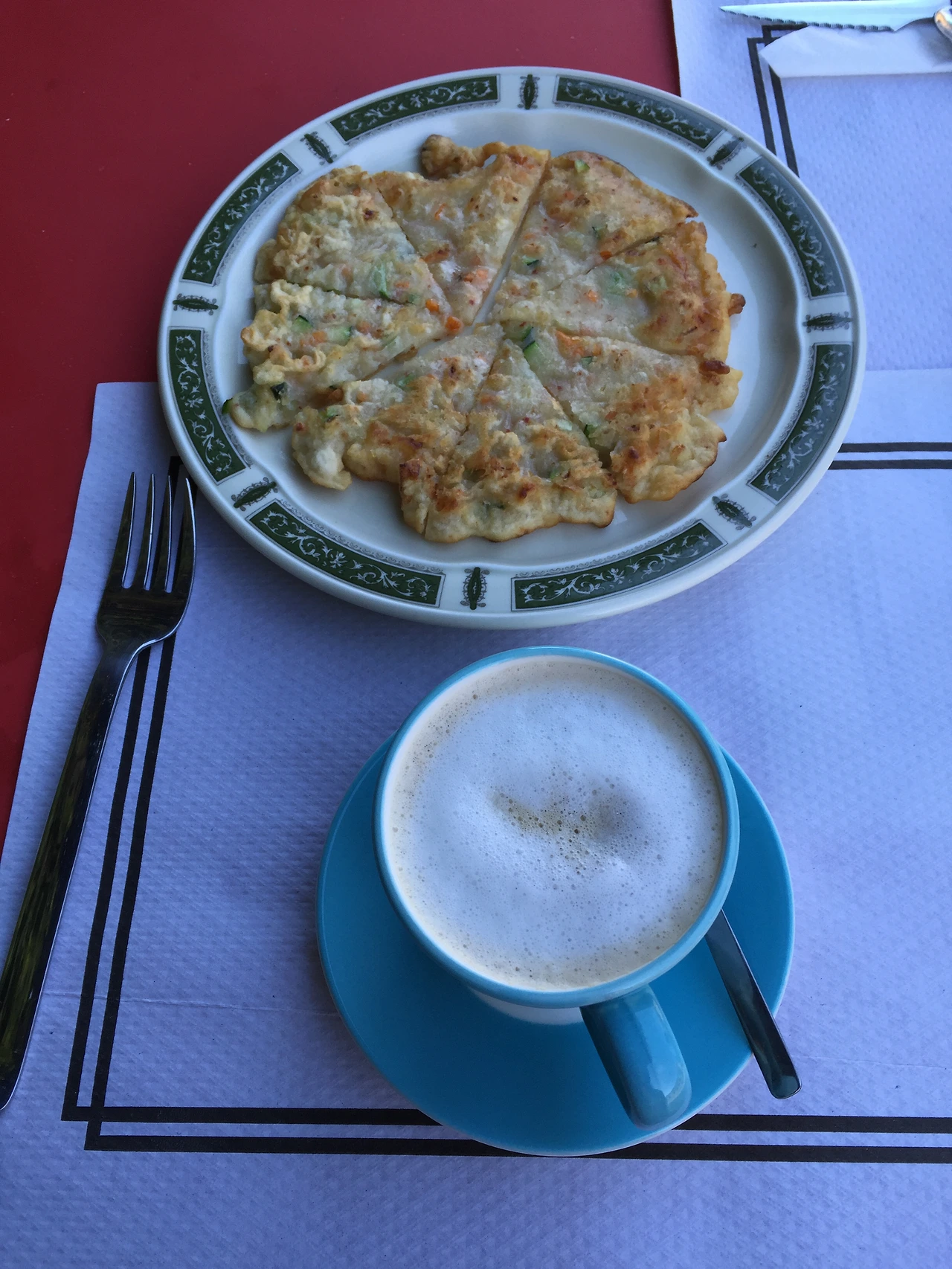 마을을 벗어날 즈음. 아이리시가 운영하는 바(Bar)에서 아침을 먹기로 한다. 그런데 메뉴에 부침개가 있는 게 아닌가. 아이리시 여자 직원에게 메뉴에 한국 음식이 있네요? 하고 물었더니 여기 식당 셰프가 한국인이란다. 거참 신기해하면서 우리는 아침으로 부침개와 커피를 시켰다. 사람책을 읽는 나로서는 한국인 셰프를 만나 어떤 사연이 있는지 좀 더 들어보고도 싶었지만. 일행인 휘가 몸이 좋지않은데다 오늘 일정을 늦게 시작하여 나의 욕심만 차릴 순 없었다. 산티아고의 길을 마친 후 만약 혼자 다시 좋았던 곳만 찾아간다면, 다시 오고 싶은 마을 오르니요스를 뒤로 하고, 출발하기로 한다.