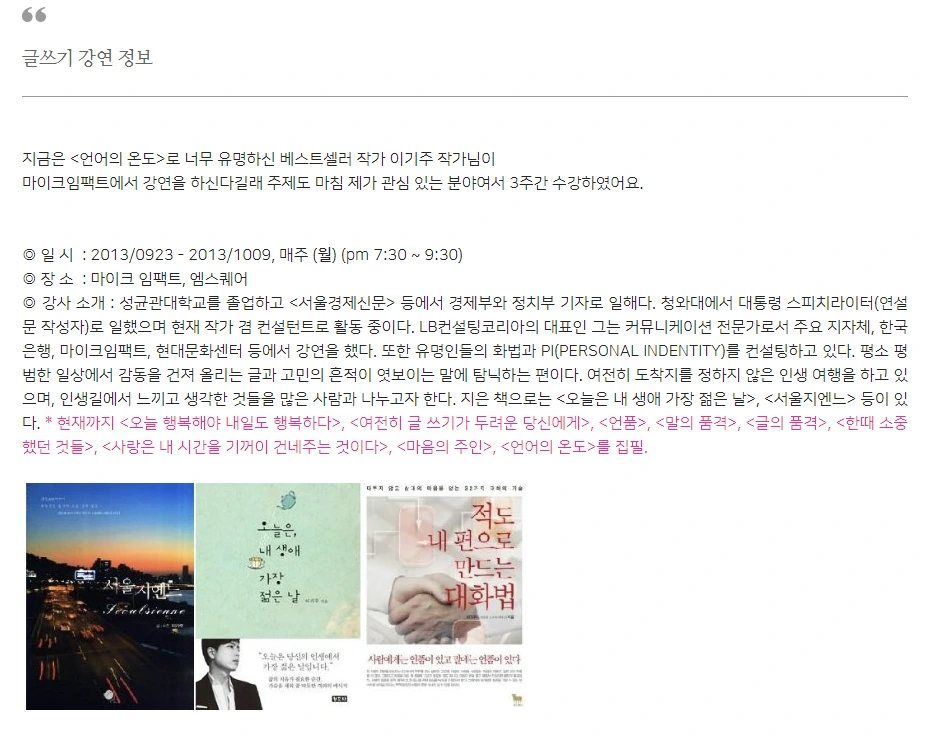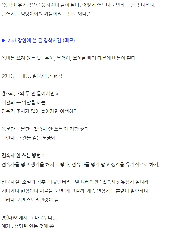 글쓰기 테크닉이나 스킬을 알려주는 수업은 아니었지만