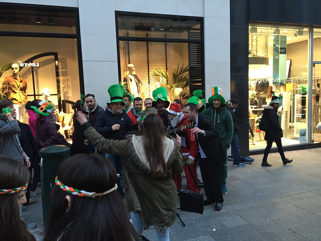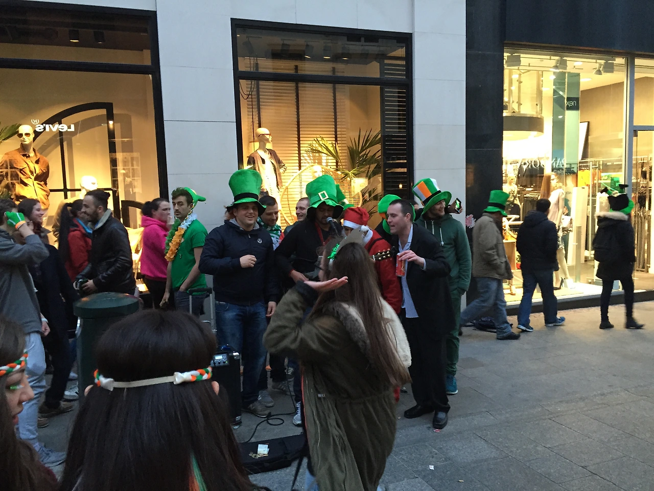 자, 이쯤 되면 그가 누군지는 알았고. 본격적으로 거리로 나서 축제를 즐겨볼까 한다. 아무래도 축제의 장은 길거리가 최고라 그라프튼 스트릿 Grafton Street으로 가기로 했다. 그라프튼 스트릿은 더블린에서 쇼핑하기 좋은 장소 중 하나로 유명 백화점 및 상점들이 밀집해 있는데 한국의 명동과도 같은 곳이다.